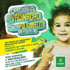 Nesta terça-feira, (28) começa em Cuiabá a campanha de vacinação contra a poliomielite. A ação, que se estenderá até o dia 14 de junho, tem como objetivo imunizar 95% das crianças com idades entre 1 e menores de 5 anos. Para garantir a vacinação, os pais devem levar as crianças a uma unidade básica de saúde (UBS) com a caderneta de vacinação.