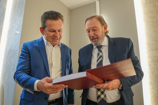 Conselheiro Novelli entrega tese de doutorado sobre mesas técnicas ao presidente do TCE-MT e ao governador Mauro Mendes