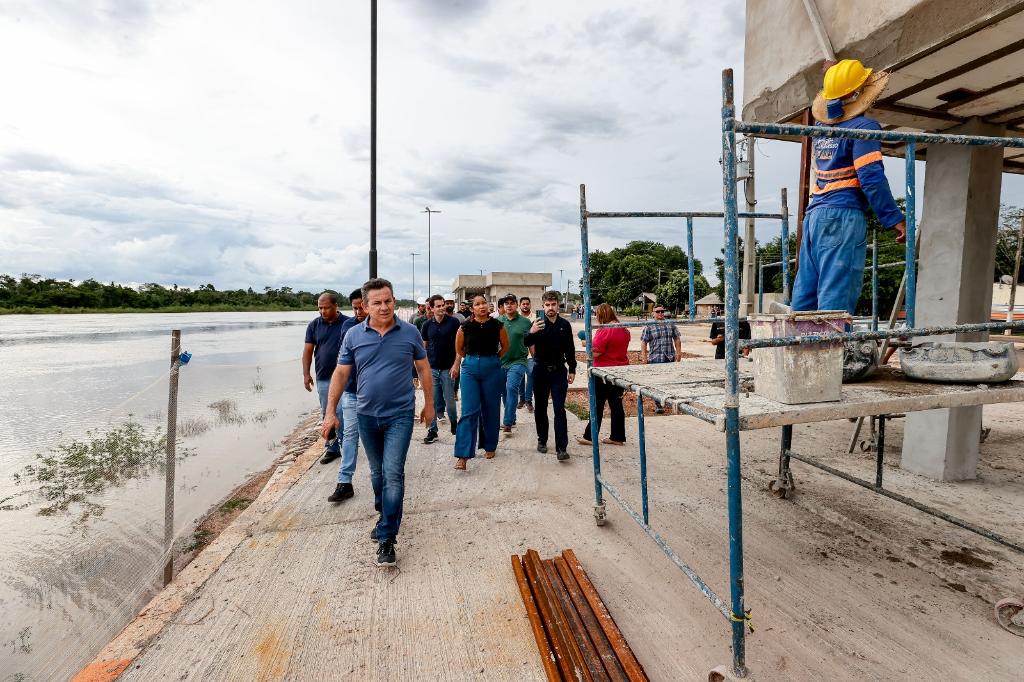 O governador Mauro Mendes vistoriou, nesta sexta-feira (7/3), as obras da orla Santo Antônio de Leverger, que já está com 80% de conclusão.