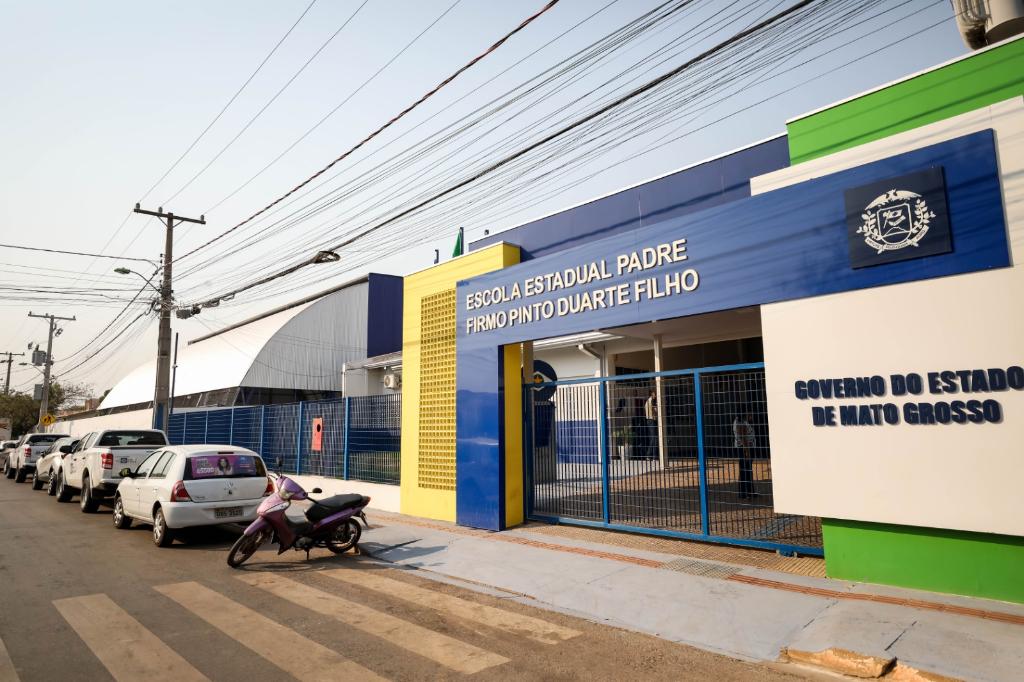 O Governo de Mato Grosso entregou, nesta sexta-feira (23.08), a reforma e ampliação da Escola Estadual Padre Firmo Duarte Filho, na região do Distrito Industrial de Cuiabá. O investimento na unidade foi de R$ 4,3 milhões, o que possibilitou ampliar a capacidade de atendimento de 731 para 1.200 estudantes. Além disso, o Estado investiu R$ 1 milhão na aquisição de Chromebooks, aparelhos de ar-condicionado, móveis e utensílios.