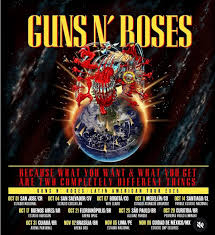 A banda Guns N’ Roses fará um show na Arena Pantanal, em Cuiabá, no dia 31 em outubro. A vinda foi confirmada no site oficial da banda, nesta sexta-feira (6). O anúncio oficial confirma a turnê brasileira do grupo, que também passará por São PauloCuritibaFlorianópolis e Brasília.