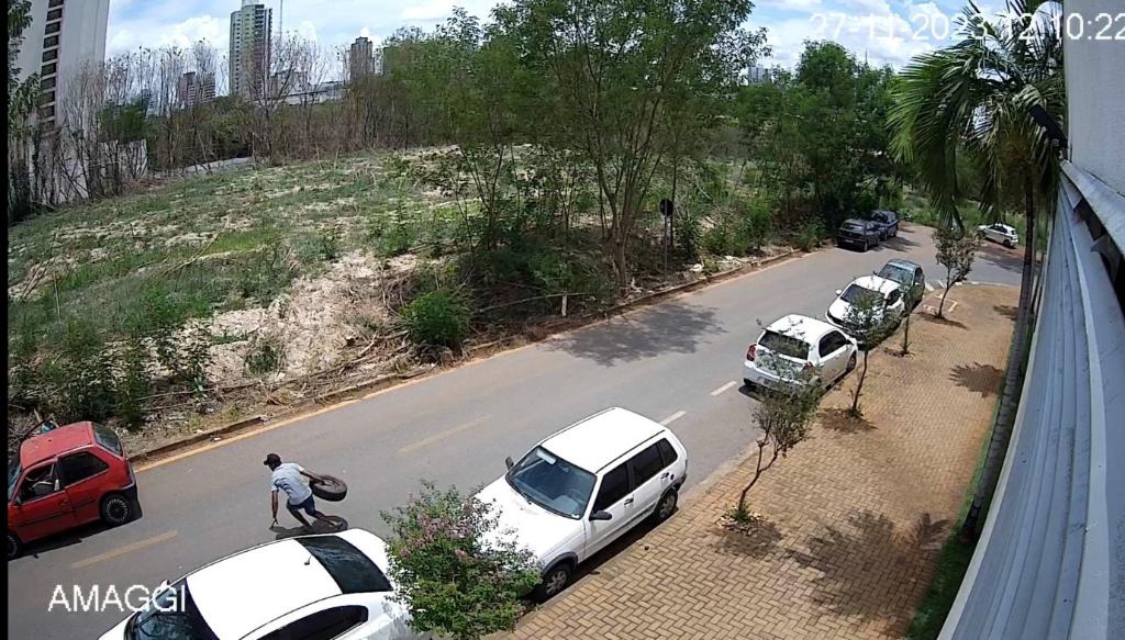 No dia 27 de outubro, outra câmera do Vigia Mais tinha flagrado outro furto de estepe de um carro que estava estacionado na Avenida André Antônio Maggi, em Cuiabá, com o uso desse mesmo Gol vermelho.