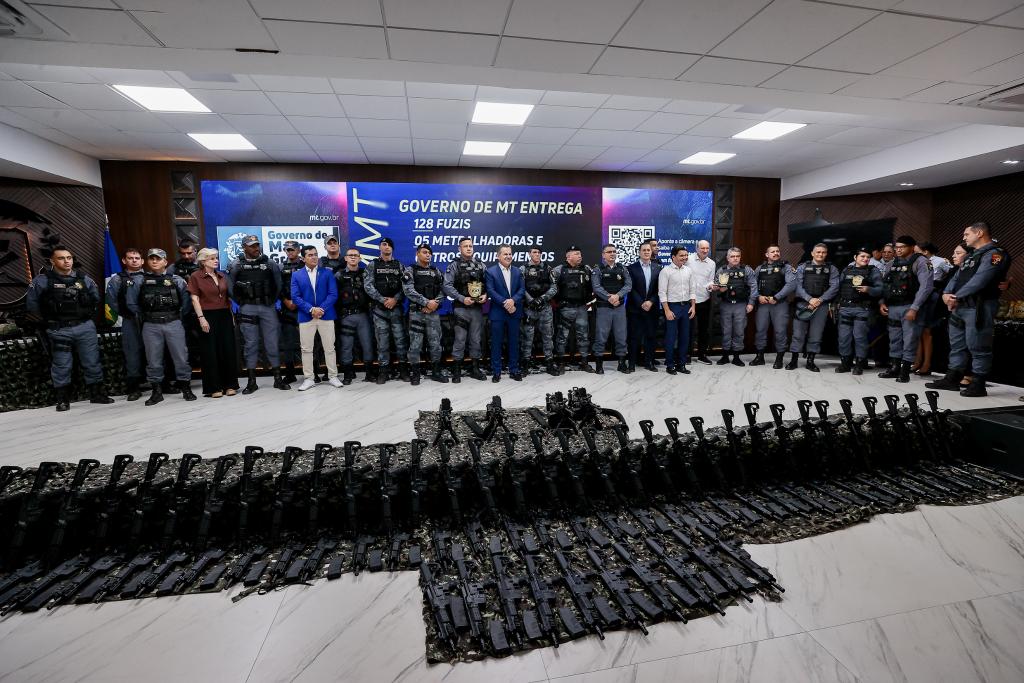 As homenagens foram concedidas durante a solenidade de entrega de 128 fuzis, cinco metralhadoras e outros equipamentos feita pelo Governo do Estado para a Polícia Militar, em um investimento de R$ 6 milhões. O governador Mauro Mendes participou do evento e parabenizou o trabalho da Polícia Militar na tolerância zero à criminalidade e ressaltou o desejo de premiar financeiramente a produtividade e a redução de crimes em decorrência das ações das forças de segurança do Estado.