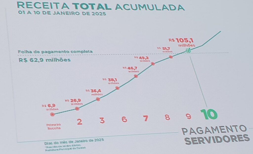 O prefeito exibiu um gráfico que mostra o ganho progressivo de receita que será acumulado para conseguir cobrir o montante que deve ser repassado aos servidores.
