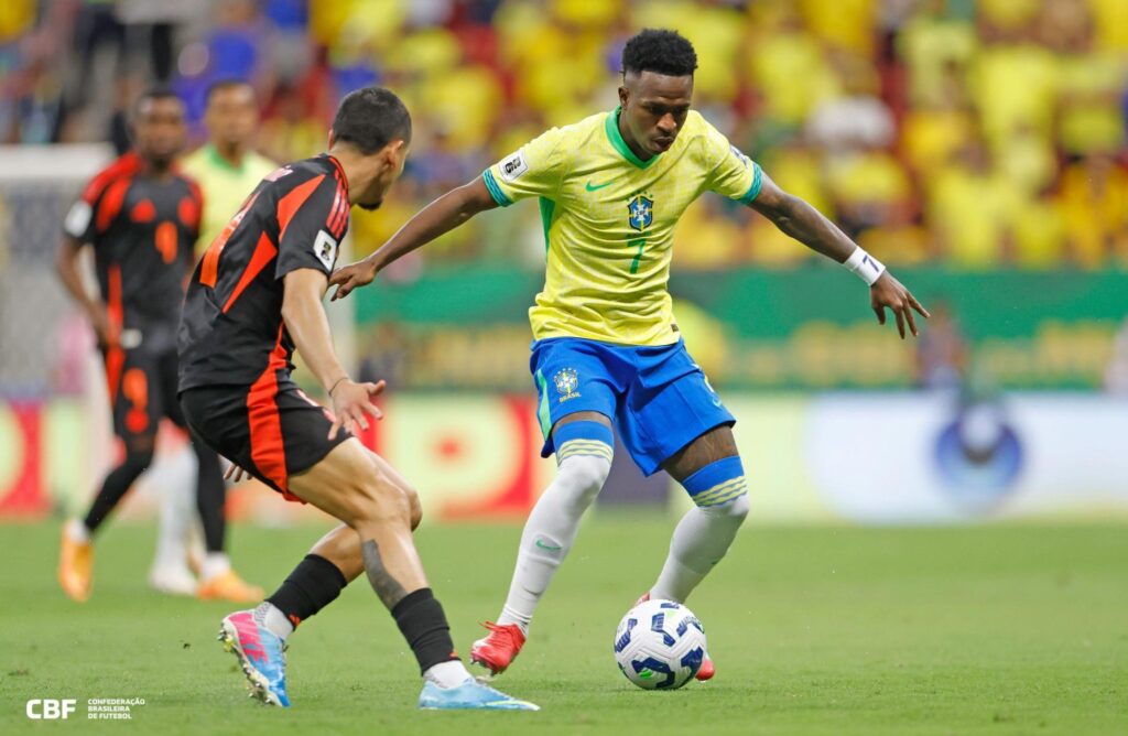 Em um jogo de tirar o fôlego, o Brasil venceu a Colômbia por 2 a 1 nesta quarta-feira, no Estádio Mané Garrincha, com um gol salvador de Vinicius Júnior nos minutos finais. A partida, válida pelas Eliminatórias Sul-Americanas, começou com o Brasil abrindo o placar com Raphinha, mas a Colômbia empatou ainda no primeiro tempo. O gol de Vini Júnior no apagar das luzes garantiu a vitória e um respiro para o técnico Dorival Júnior.